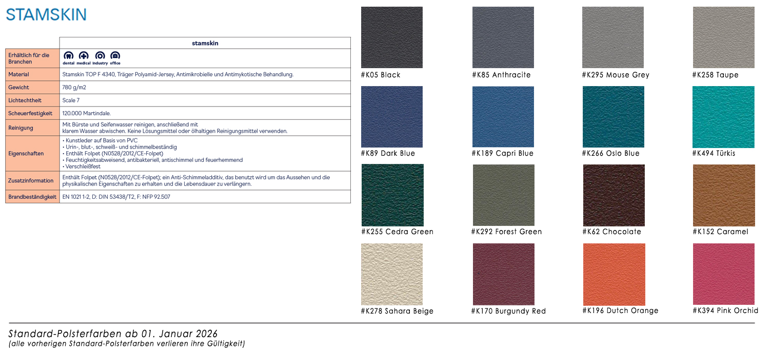 Unser Sattelstuhl ist in zahlreichen Farben lieferbar.